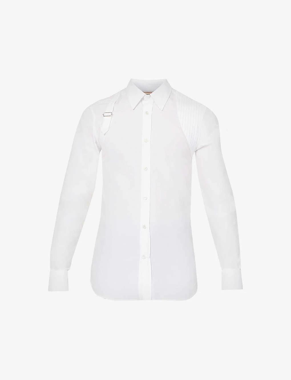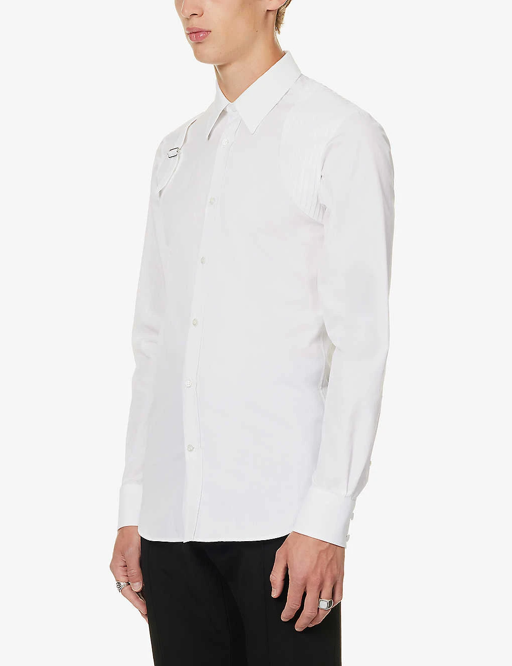Alexander McQueen Harness Pleated-panel Slim-fit Cotton-poplin Shirt