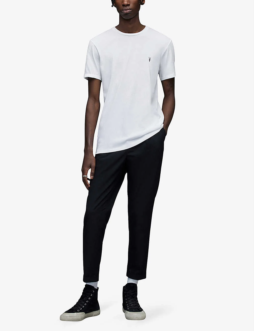 Slim-fit, crewneck, ribbed neckline, short sleeves, embroidered ramskull logo at chest, soft-finish, straight hem