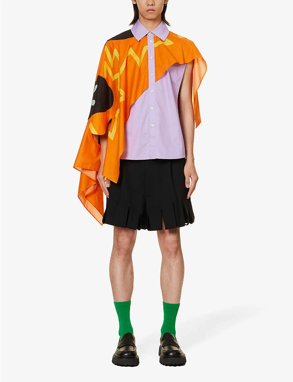 Art Asymmetric-panel Regular-fit Cotton-poplin Shirt