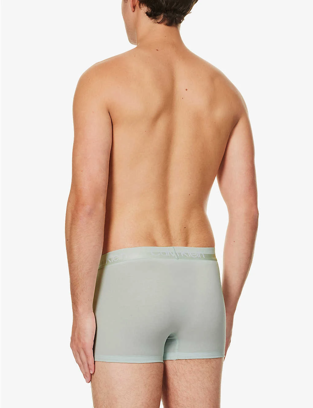 Calvin Klein Branded-waistband Mid-rise Pack Of Three Stretch-cotton And Recycled-polyester Trunks