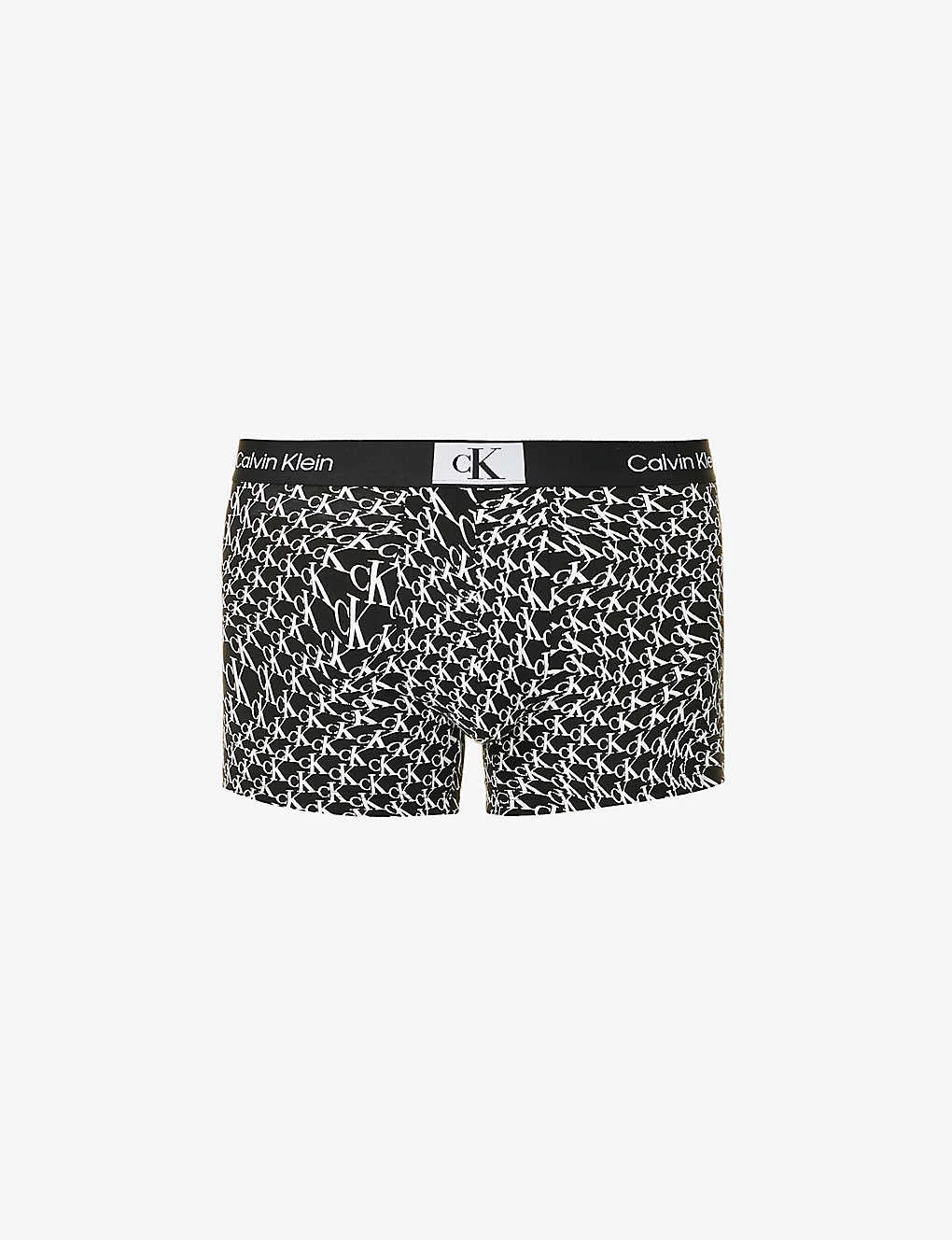 Calvin Klein Monogram-print Stretch-recycled Cotton-blend Trunks