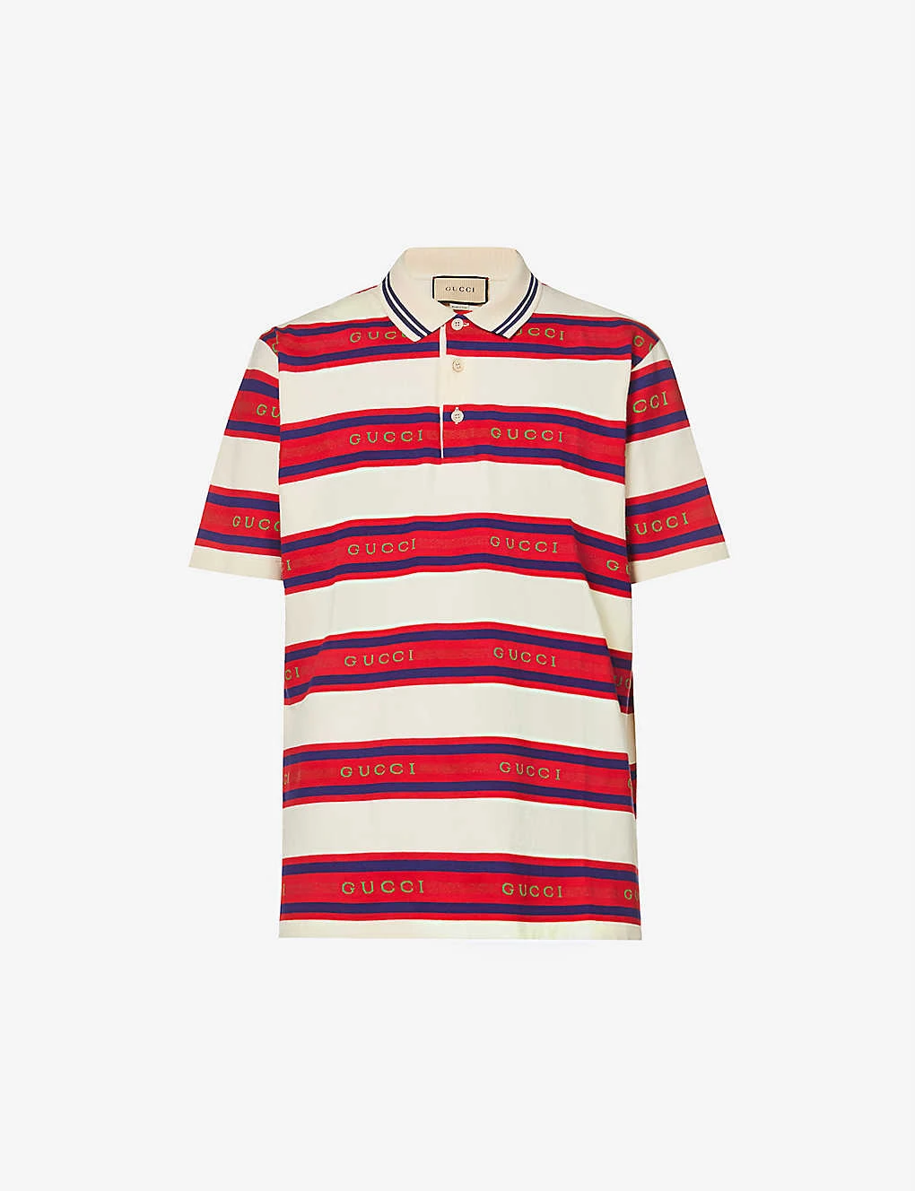 Gucci Striped Short-sleeved Cotton-jersey Polo Shirt