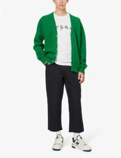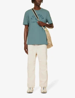 - Relaxed fit, crewneck, ribbed trim at neck, short sleeves, brand print at chest