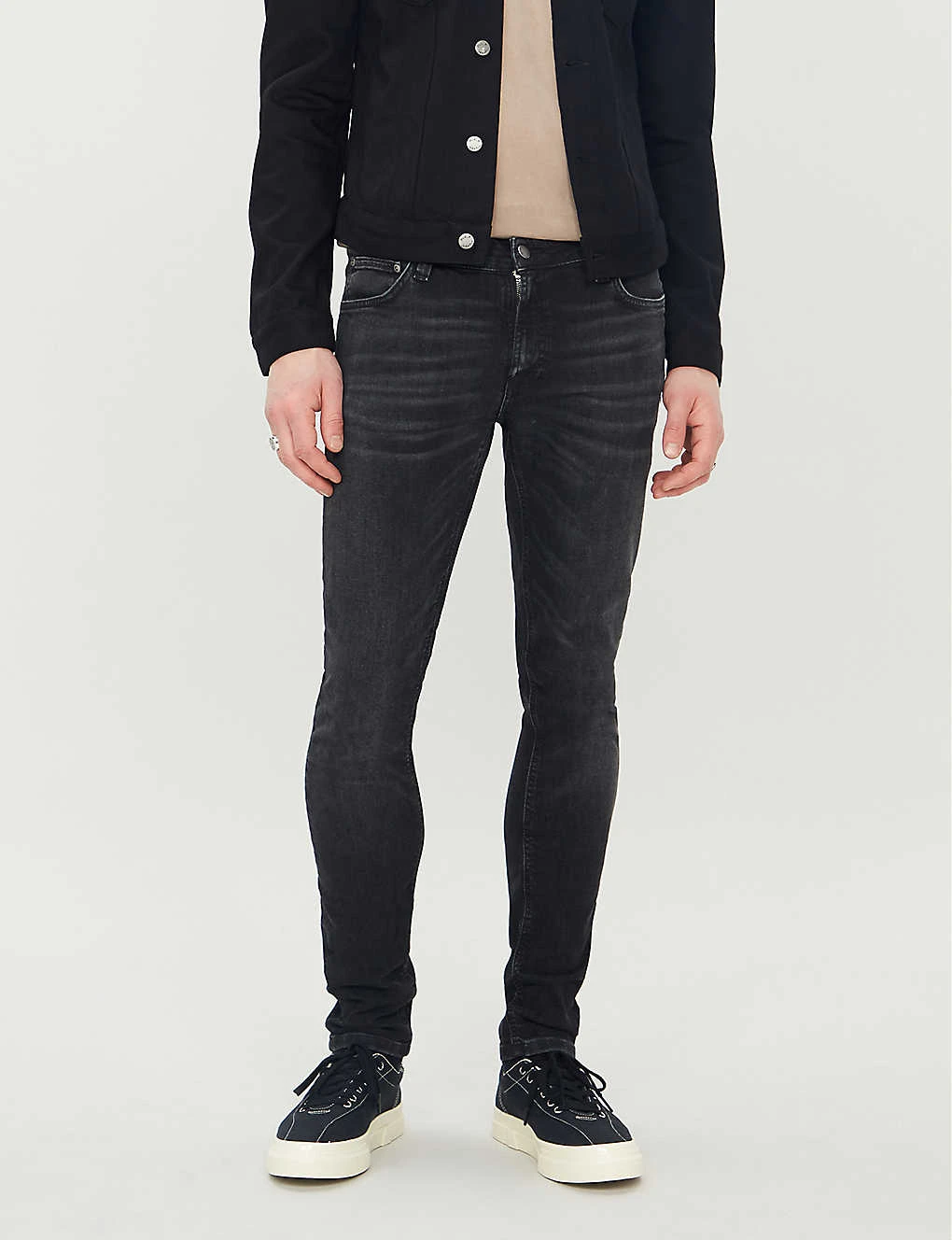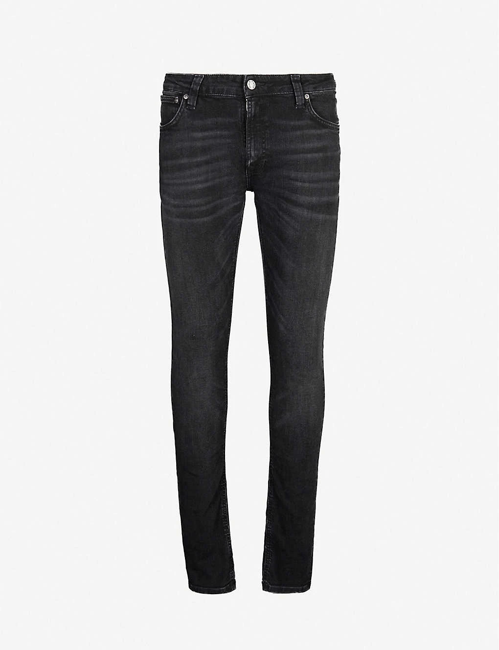 Nudie Jeans stretch-cotton chinos Exposed button and concealed zip-fly fastenings at front Slim-fit, tapered, mid-rise, belt loops, five pockets, faded wash and whiskering, branded hardware, branded tab at back pocket 97% organic cotton, 3% elastane Machine wash Size 32: Rise 9″”, inside leg 32″”, leg opening 14″” Model is 6ft 2″” and wears a size 32