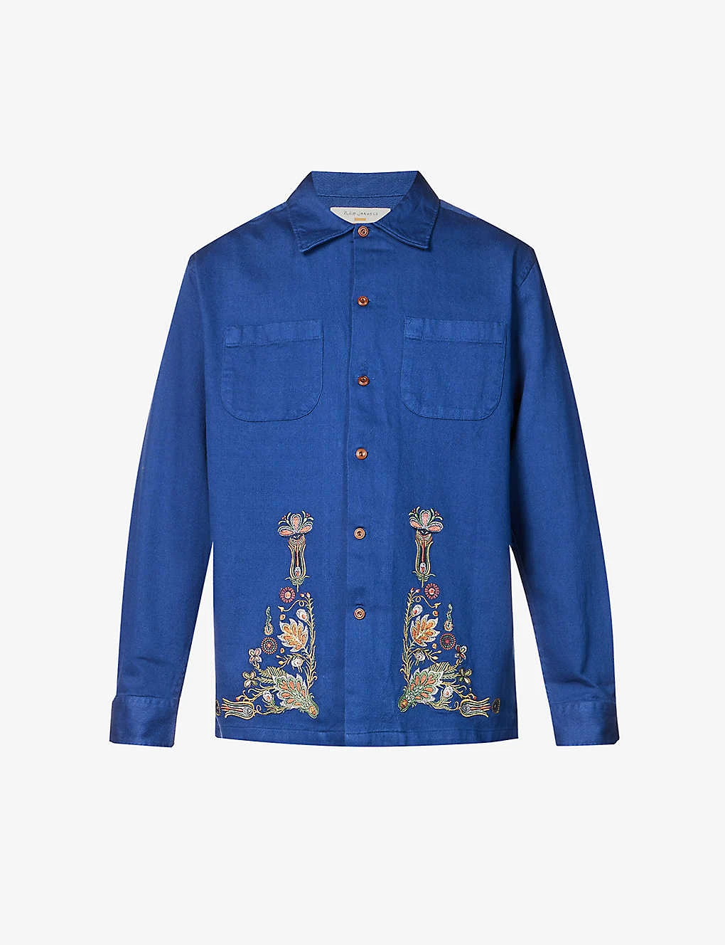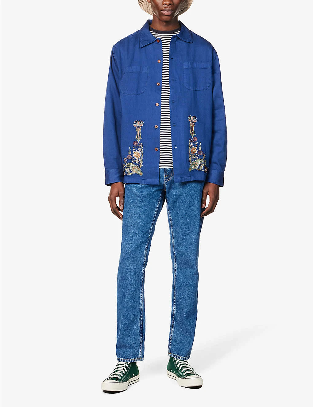 Nudie Jeans Vincent Floral-embroidered Regular-fit Organic-cotton Shirt
