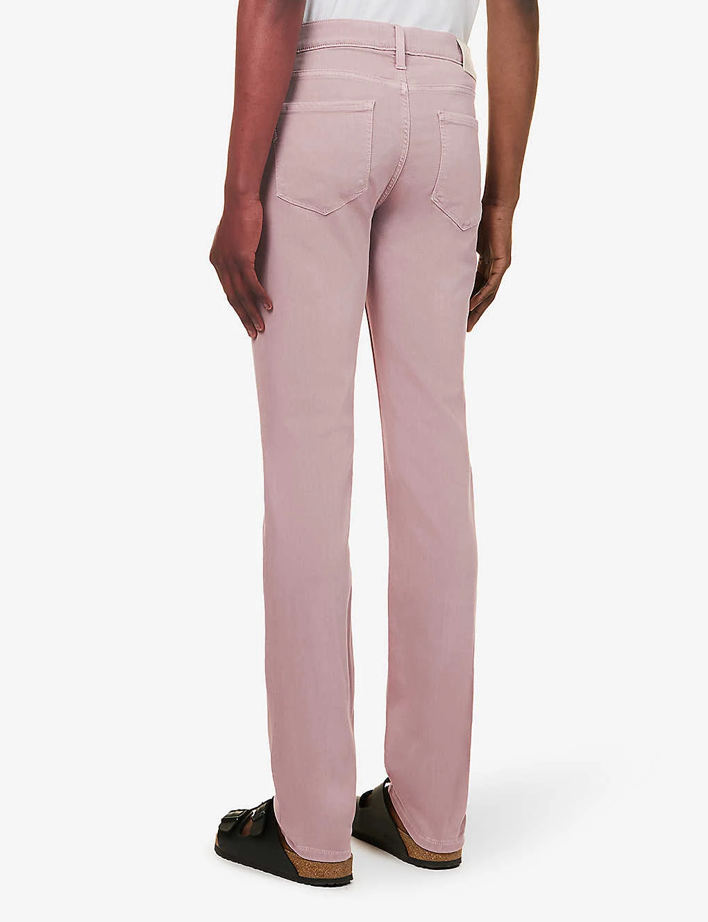 - Slim fit, mid-rise, straight leg, belt loops, five pockets, branded hardware, brand patch at back, partially lined