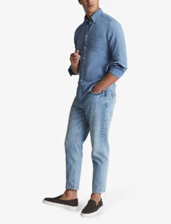 - Exposed button and concealed zip-fly fastening