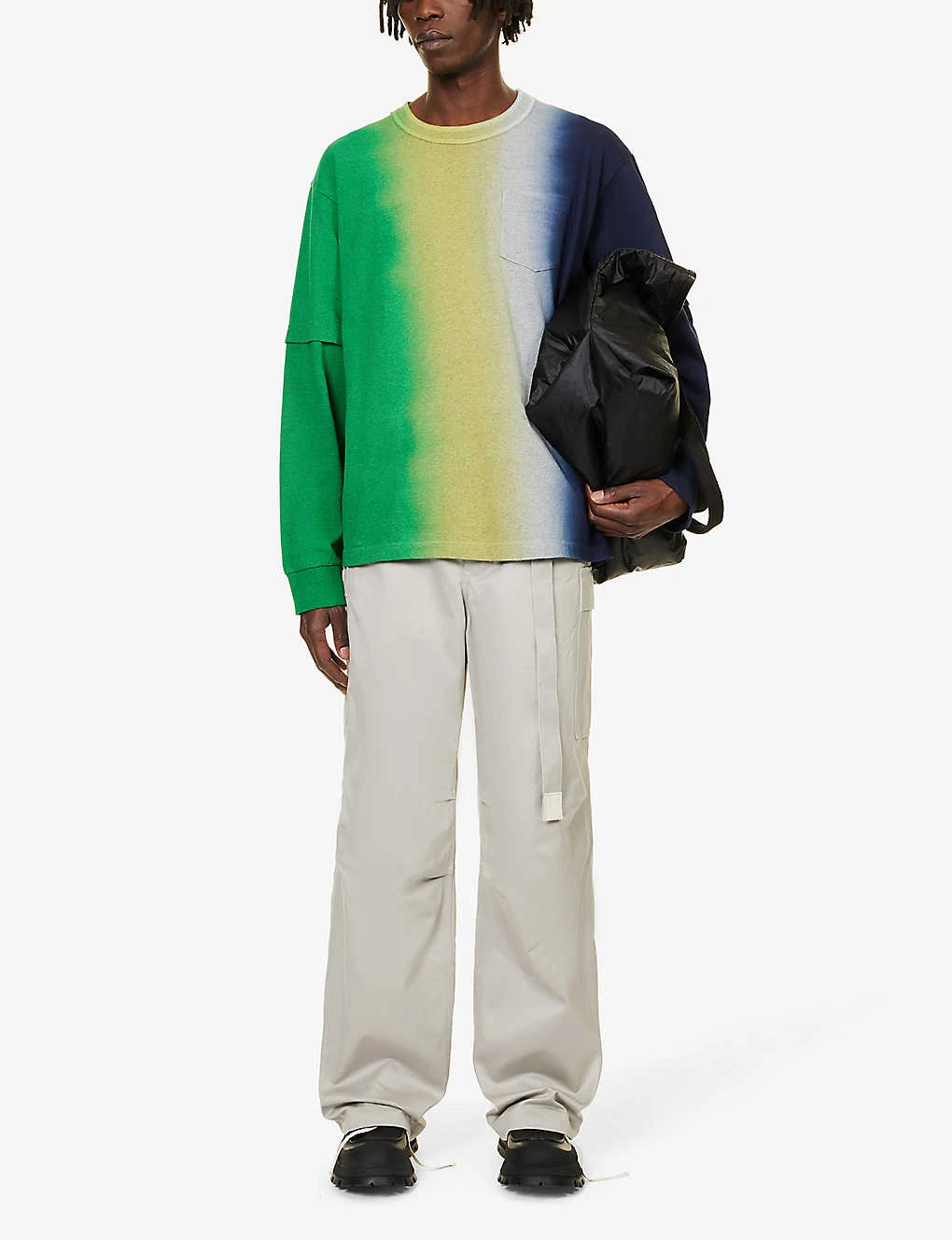 - Relaxed fit, crewneck, dropped shoulders, long sleeves, patch pocket at chest, brand print at back, gradient design, ribbed trims