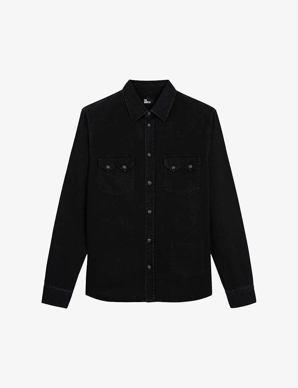 - Classic collar, long sleeves, buttoned cuffs, silver-tone hardware, patch pockets at the chest, regular fit