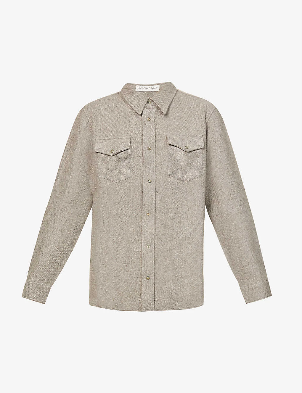 Unisex Gemstone-embellished Popper Relaxed-fit Cashmere Shirt