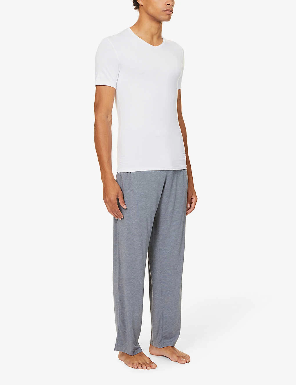 - Mid-rise, branded elasticated waistband, supportive pouch at centre front, tonal stitching